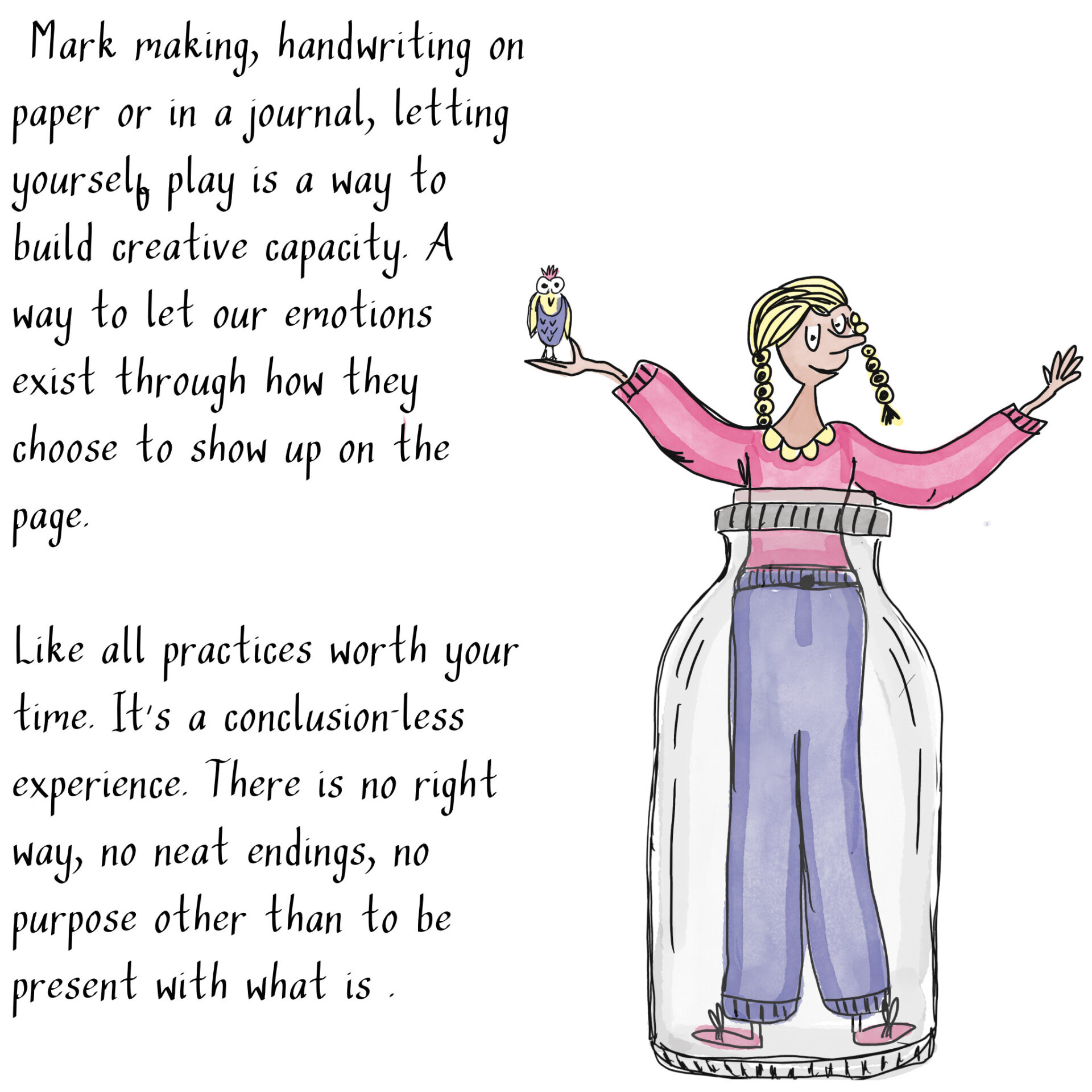 I didn’t want the important bits — the ones you can actually apply — to get lost in the mix, so I’ve made an illustrated version for you here, with a downloadable poster at the end if you need a little creative un-stucking.